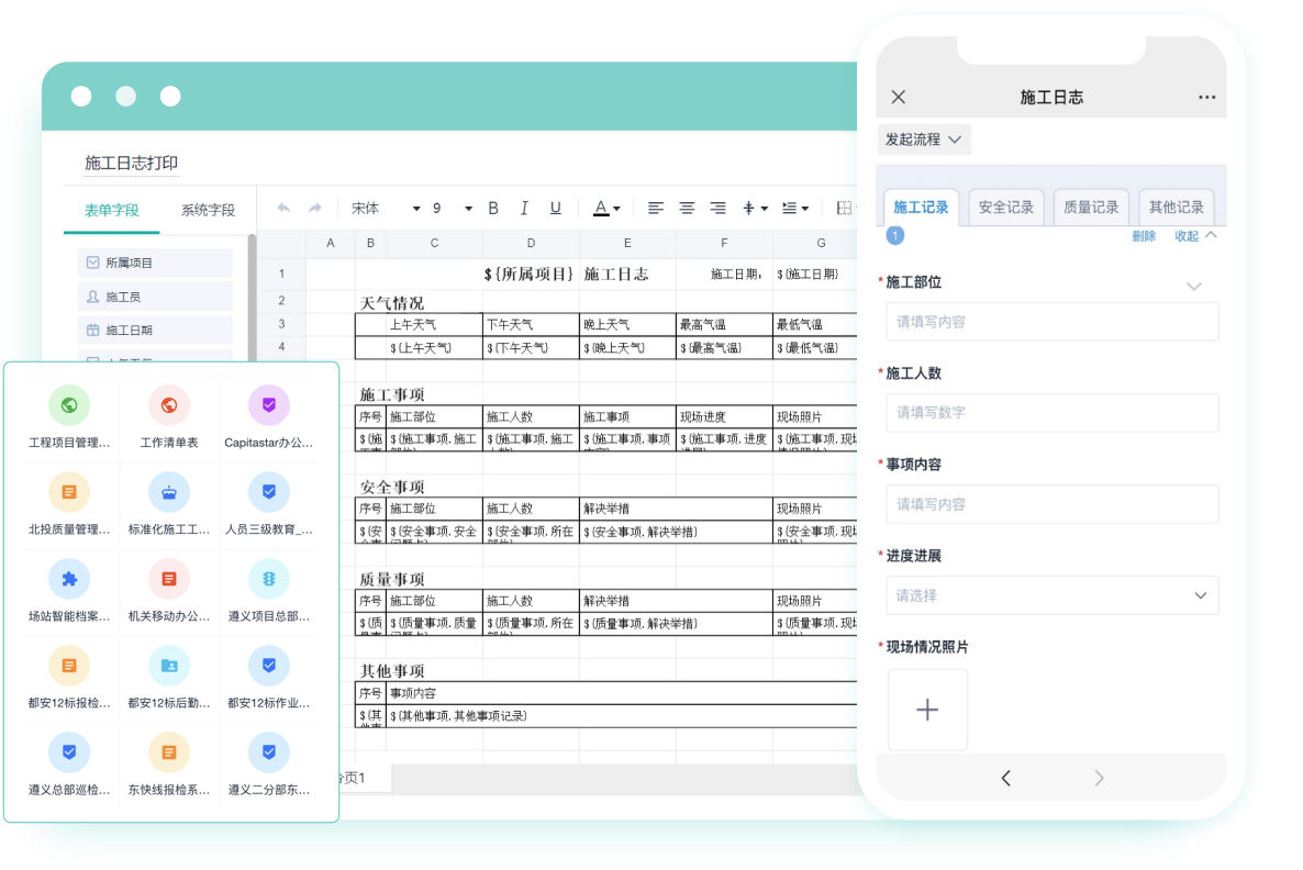 施工日志在线填写收集,设置模板批量打印