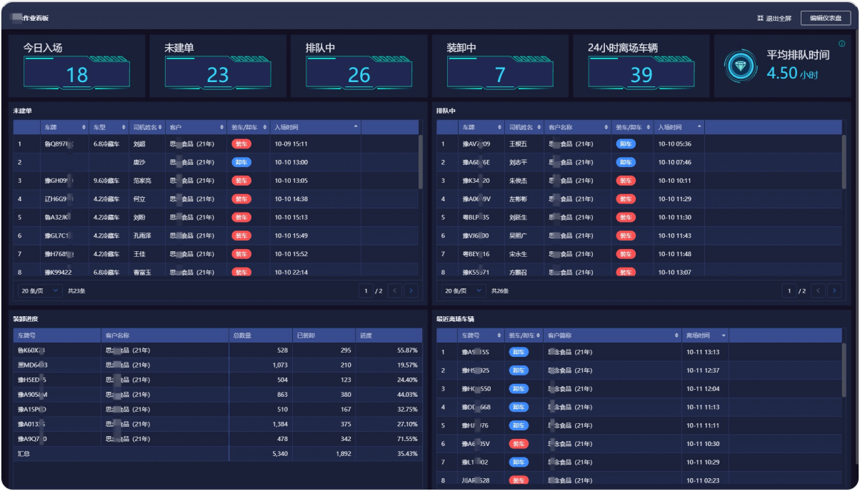 方案:通过简道云制作专属的数据看板,利用智能助手连接钉钉群机器人, 实时在群内播报装卸情况